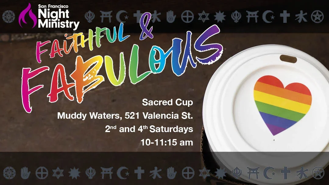 Faithful&Fabulous Minister, John Brett, serves in & alongside the LGBTQ+ community, focusing on the most vulnerable amongst us. Whether building community with trans Latinas in the Mission, hosting programs like Sacred Cup on queerness & spirituality, or tipping drag queens at the gay bars we’ve long visited, the SF Night Ministry & our friends remain both Faithful&Fabulous!